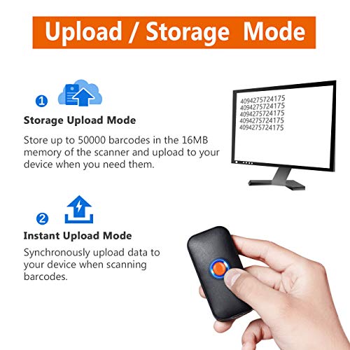 【Due modalità di caricamento】Modalità di caricamento istantaneo + modalità di salvataggio. Scannerizza e memorizza fino a 50000 codici a barre nella memoria incorporata dello scanner, poi carica tutti i dati memorizzati sulla tua macchina quando necessario.