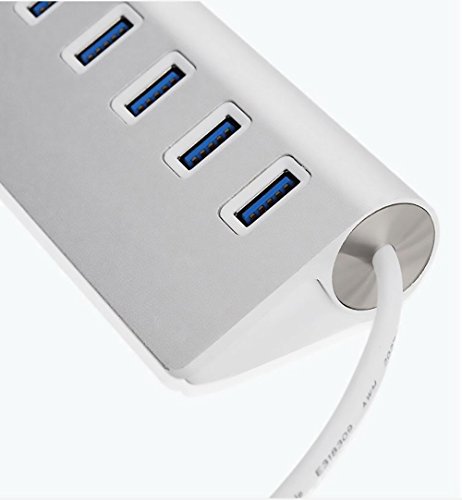 Mytk portatile Premium USB 3.0 7 porte hub in alluminio della gomma con fixem USB 3.0 cavo in argento (7 porte)