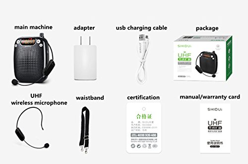 Portatile ricaricabile amplificatore di voce con microfono wireless UHF Altoparlante, 10 Gioca ore Tempo di 10W, 2200mAh batteria al litio, carta di TF di sostegno / MP3 per gli insegnanti, Guide Turistiche, Coach (nero)
