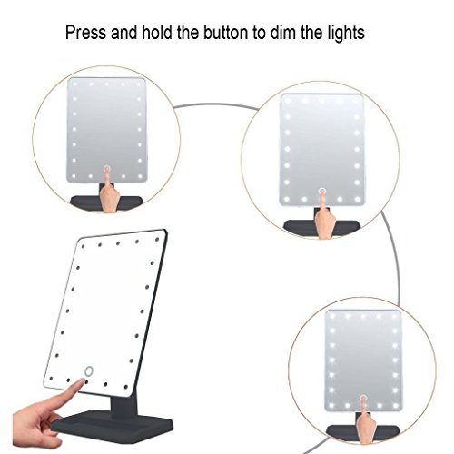 Portatile specchio di trucco con luci LED, 20 LED corrente della luce regolabile, 12 Grande schermo con interruttore touch, 10 x ingrandimento, 360 gradi di rotazione per camera o bagno