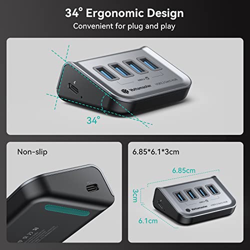 DESIGN ERGONOMICO - Questo hub USB 3.0 offre una protezione superiore, un'eccellente dissipazione del calore e un look elegante. L'angolo ergonomico di 34 gradi facilita lo scollegamento e l'inserimento dei dispositivi USB. È dotato di una fascia antiscivolo per una migliore stabilità sulla scrivania.