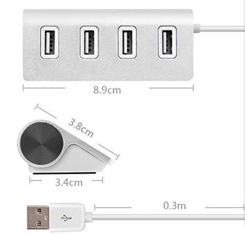 MOKE USB 2.0 con 4 Porte USB HUB in Lega di Alluminio Argento USB 2.0 HUB per Mac PC USB Flash Drive e Altri dispositivi (Argento)