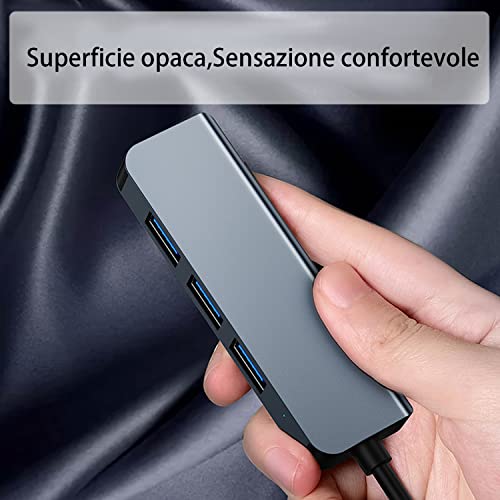 【4 in 1 Espansione Estrema 】: l'adattatore usb c ha 1 porte USB 3.0 e 3 porte 2.0 (USB 3.0 = 5 Gbps / USB 2.0 = 480 Mbps, teoricamente 10 volte più veloce di USB 2.0).