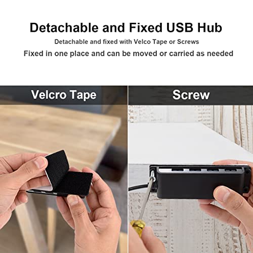【Con cavo di prolunga USB 3.0 da 3,3 piedi】 Questo hub USB sotto la scrivania con cavo di prolunga da 3,3 piedi può estendere le porte USB C a lunga distanza su/sotto il desktop nella posizione desiderata. montato a parete, fissato saldamente sul bordo della scrivania o del computer. Inoltre, il design pratico e compatto offre un modo ideale per accedere rapidamente ai dispositivi USB ovunque.