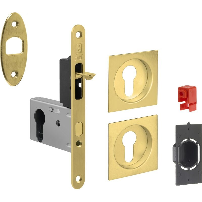 In acciaio. per porte con spessore da 34 a 50mm. non necessita di ditale di trascinamento. composto da:- coppia di nicchie quadre ¦ 48mm con foro chiave- chiave- serratura g500t entrata 50 mm, frontale 160x16.finitura oro lucido