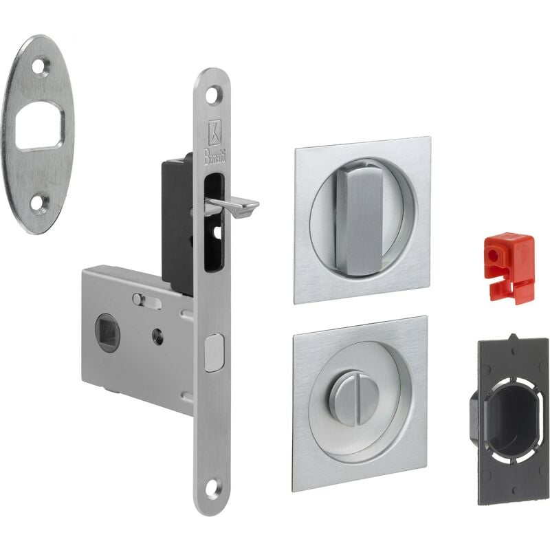 In acciaio. per porte con spessore da 34 a 50mm. non necessita di ditale di trascinamento. composto da:- nicchia quadra ¦ 48mm con nottolino- nicchia quadra ¦ 48mm con vite di emergenza- serratura g500t entrata 50 mm, frontale 160x16.finitura cromo sati