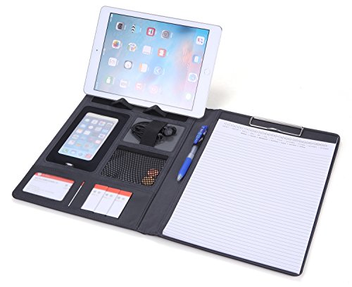 Portfolio Padfolio writing Pad Holder cartella Portablocco Storage bloc-notes, scrittura formato A4 con cerniera in ecopelle Business conferenza intervista Resume documenti personali organizer Black
