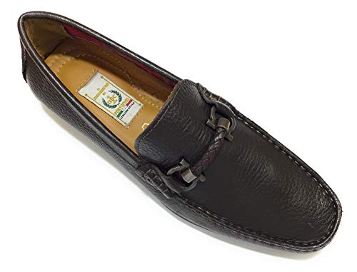 Portofino 853-18218 Milled Dark Brown Mocassino Uomo Vera Pelle Cucito a Mano (42 EU)