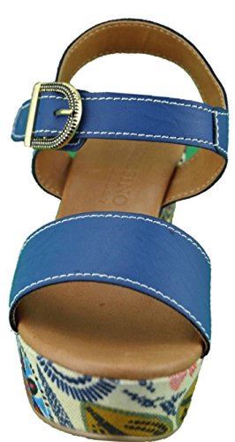 Portofino Sandalo Donna in Pelle Blu con Tacco Alto e Plateau Fantasia