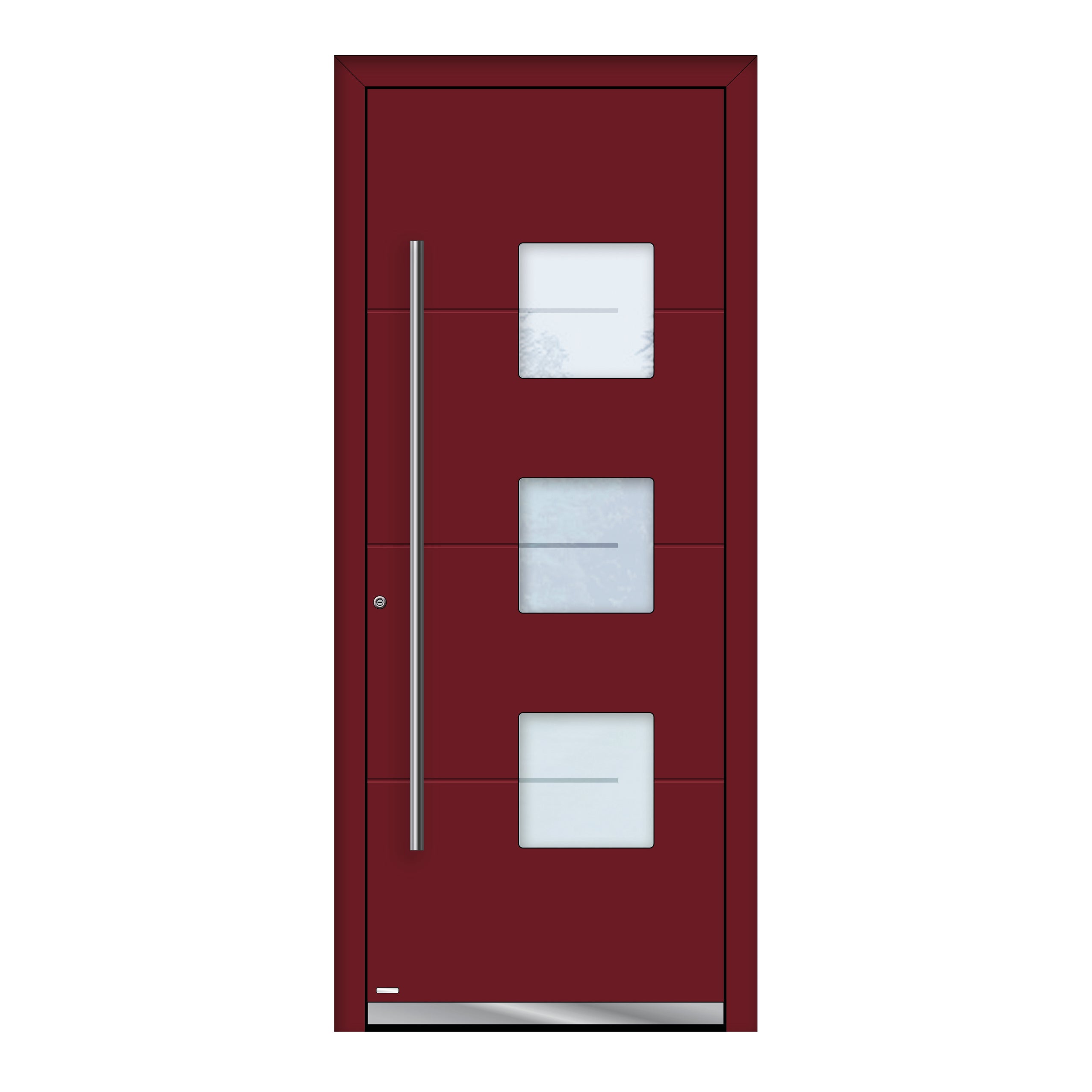 Questa combinazione gioiosa e giocosa data da tre finestrelle quadrate arricchisce una casa di per sé già felice. Per i giovani di spirito. L'elegante maniglione in acciaio inossidabile non fa altro che esaltarne lo splendore.. Porte di sicurezza solide per case, appartamenti, uffici e altro.. Questo è il settore di competenza in cui le porte Aurum brillano. Il loro spessore è addirittura di 8,7 cm, il che non offre solo una piacevole sensazione di sicurezza ma anche un'elevata protezione alle variazioni di temperatura.. Grazie all'incredibile isolamento termico Aurum si posiziona tra le porte adatte a case a basso consumo energetico. Il livello di sicurezza viene ulteriormente aumentato dalla serratura a tre punti con tre solidi ganci.. La robusta struttura in acciaio non richiede manutenzione per i prossimi decenni. È composta da profili in alluminio a 3 guarnizioni montati in modo impeccabile che creano un solido blocco monolitico.
