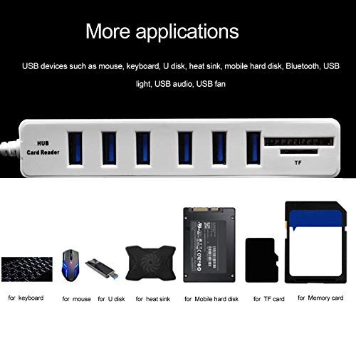 USB 2.0 Hub 6 Ports High Speed 480 Mbps TF/SD Card Reader USB Splitter For PC Laptop Computer Peripherals Accessories