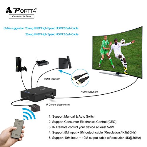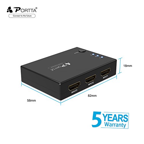 Portta HDMI 4K 60Hz 3X1 Commutatore Switch 3 Porte Switcher 3 ingressi 1 uscita Full 3D Supporto 7.1 audio surround HDCP HDR 2.2 per PS4 PRO/X-BOX One/Blu-ray DVD/Macbook/Roku TV/Fire TV