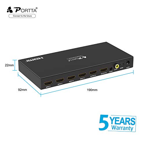 Portta Switch Matrice HDMI 4 Ingressi 4 Uscita Splitter Matrix HDMI Commutatore Distributore con telecomando IR Estrattore audio HDMI supporto 3D 2CH / 5.1CH HDCP DTS/Dolby per Xbox360 PS3 PS4 Notebook PC DVD HDTV DLP Monitore