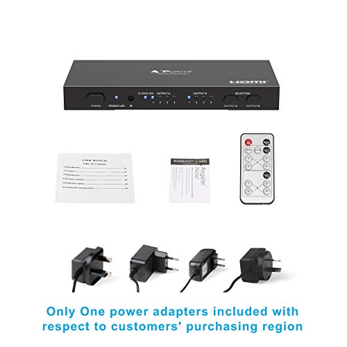 【Contenuto della confezione】HDMI Matrix Switch x1, 5 V DC Power Supply x1, Manuale utente x1, Telecomando x1, scheda di garanzia x1 (5 anni senza preoccupazioni).