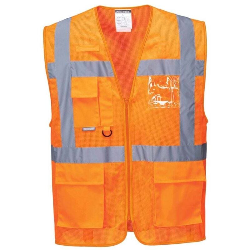 Gilet con tecnologia MeshAir che assicura un'ottimo flusso d'aria, tasche multiple, supporto di identificazione, anello della radio e frontale con zip. GILET CON TECNOLOGIA MESHAIR DESCRIZIONE: La tecnologia avanzata MeshAir assicura un'ottimo flusso d'aria mantenendo il corpo fresco in ogni momento. Il tessuto MeshAir è anche pienamente conforme alla norma EN ISO 20471. Questo gilet incorpora caratteristiche esecutive classiche tra cui tasche multiple, supporto di identificazione, anello della radio e frontale con zip per un facile accesso. CARATTERISTICHE: Certificato CE Fresco tessuto in rete 7 tasche ampie Porta badge a doppio verso permette di visualizzare l'ID card sia in orizzontale che in verticale
