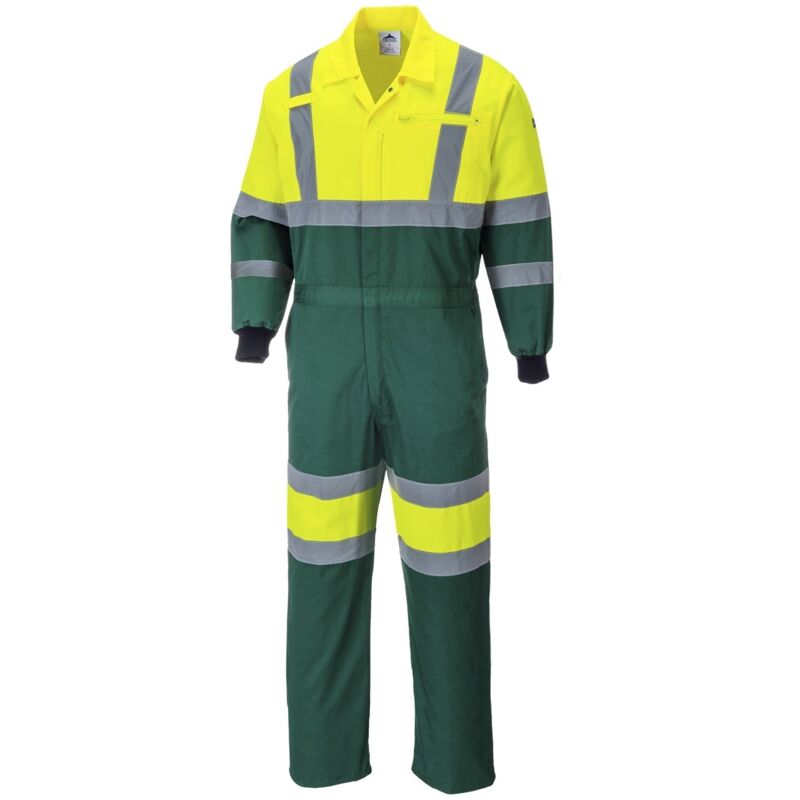 Questa tuta bicolore giallo e verde garantisce il massimo comfort durata e sicurezza. Adatta per il settore agricolo, vivai e manutenzione del verde. La moderna colorazione a contrasto in combinazione con varie funzioni intelligenti come una tasca porta telefono nascosta anello per radio e polsini in maglia la rendono ideale per una vasta gamma di professionisti. DESCRIZIONE: Questa tuta garantisce il massimo comfort durata e sicurezza. La moderna colorazione a contrasto in combinazione con varie funzioni intelligenti come una tasca porta telefono nascosta anello per radio e polsini in maglia la rendono ideale per una vasta gamma di professionisti. CARATTERISTICHE: 5 tasche Anello radio Apertura con zip nascosta Banda riflettente Certificato CE Certificato per oltre 50 lavaggi Design comunitario registrato Elastici in vita Polsino in maglia TEXPEL SOS - Stain-Oil-Splash Tasca per cellulare Tasca posteriore con patta Tessuto Texpel in Poliestere/Cotone UPF 50+ Zip doppio verso