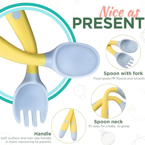 Qualità del materiale: cucchiaio da apprendimento per bambini in PP e morbido TPE, bordi lisci, durevole, senza sbavature sulla superficie, protegge molto bene le gengive sensibili e i denti del bambino e assicura che il bambino si diverte a mangiare mentre sei sano.