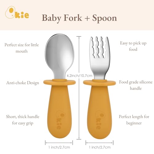 Qkie Set di posate per bambini con custodia, in acciaio inox, con manico in silicone, 10 mesi +
