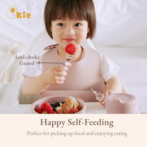 DESIGN SICURO: i bordi arrotondati e la punta sottile sono perfetti per la bocca di neonati e bambini. Inoltre, le posate per bambini sono dotate di una protezione contro il soffocamento, che impedisce ai bambini di infilarsi le posate nella gola durante l'auto-alimentazione.