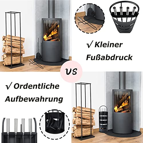 LZQ Set di posate per camino, in acciaio inox, 5 pezzi, colore nero, classico accessorio per camino, per la pulizia del camino, in cucina, per la casa