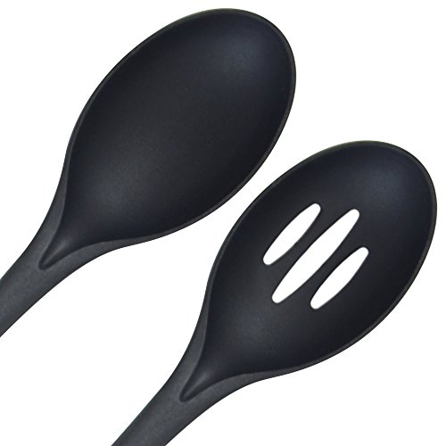 Ottimo set con 2 cucchiai da cucina professionali in nylon con poggia mestolo. Utensili da cucina essenziali e multiuso, per la casa o le cucine commerciali. Lunghi 35,6 cm, i cucchiai sono resistenti al calore fino a 210 °C, robusti, durevoli e antimacchia. Il comodo porta cucchiaio in silicone evita di sporcare il piano di lavoro. Per tutte le esigenze in cucina e in casa.