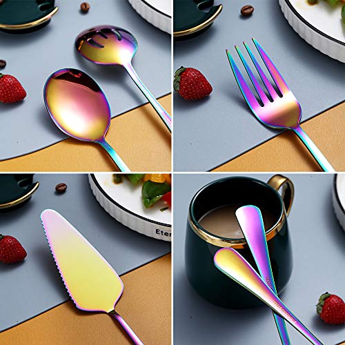 Set di Posate da Portata Arcobaleno 10 Pezzi, Set Di Utensili Da Portata in Acciaio Inossidabile, Cucchiaio Da Portata Con Intaglio, Cucchiaio Da Portata, Pala Da Portata, Forchetta Da Portata,Mestolo