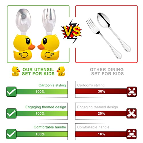 Posate Svezzamento, WitBicg Posate Bambini Forchetta Bambini, Acciaio Cucchiaino Svezzamento Pappa Neonato Svezzamento, Lavabile In Lavastoviglie Silicone e acciaio inossidabile - Anatra