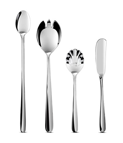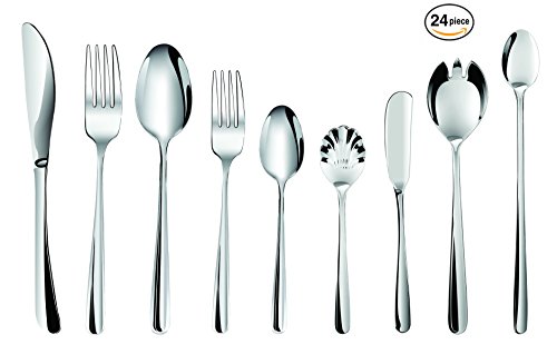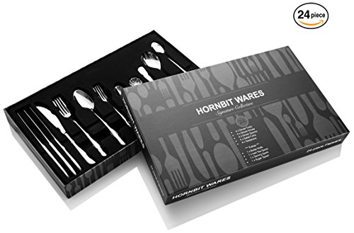 Set di posate da tavola da 24 pezzi in acciaio inossidabile con 4 set per servire in più, argenteria del tipo 304, collezione Hornbit (24 pezzi di dimensione europea), Acciaio inossidabile, Stainless Steel Silver, 24