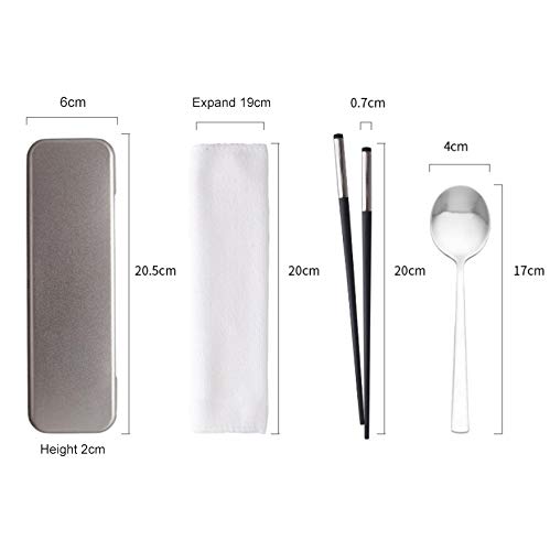 Set di posate da viaggio, riutilizzabili, 1 paio di bacchette e cucchiaio, con custodia per studenti e signora, in acciaio inossidabile