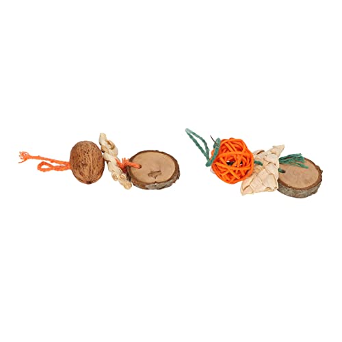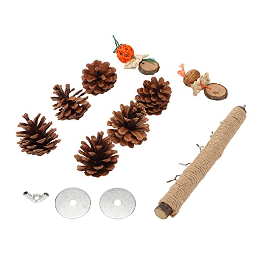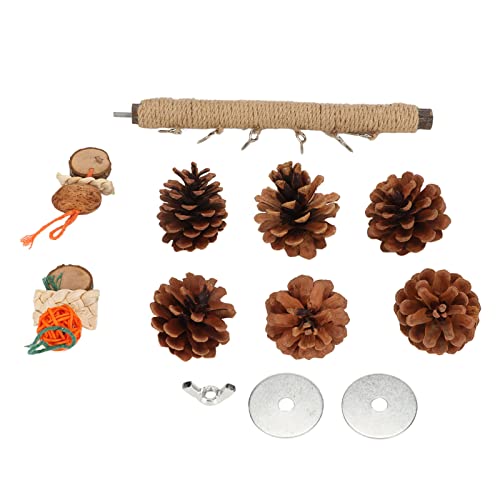 Materiale premium: il trespolo per uccelli è fatto di tronchi, spago, pigne, noci, bucce di mais, palline di rattan, ecc. Nessun pigmento o sostanza nociva, completamente sicuro per gli uccelli.