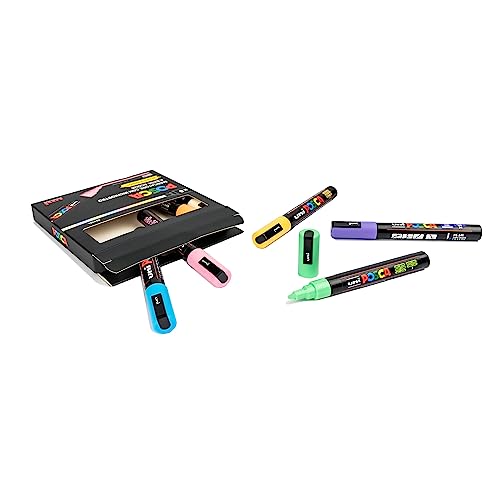 Posca - UniPosca Set Completo con 8 Pennarelli Color Pastello, Punta Media 2,5 mm - Cancelleria con Pennarelli Acrilici Uni Posca, Validi anche come Colori per Tessuti, Legno, Vetro, Ceramica e Altro