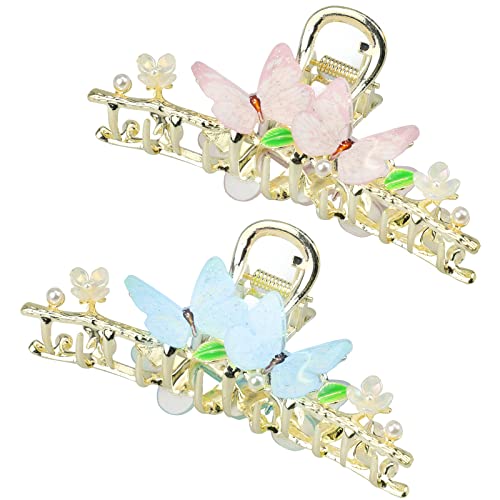 Posionks 2 pezzi Farfalla Presa Morsetto Mascella Pinze di Capelli Grande Clip di Capelli Antiscivolo Artiglio per Capelli Flessibile in Metallo Dorato Antiscivolo