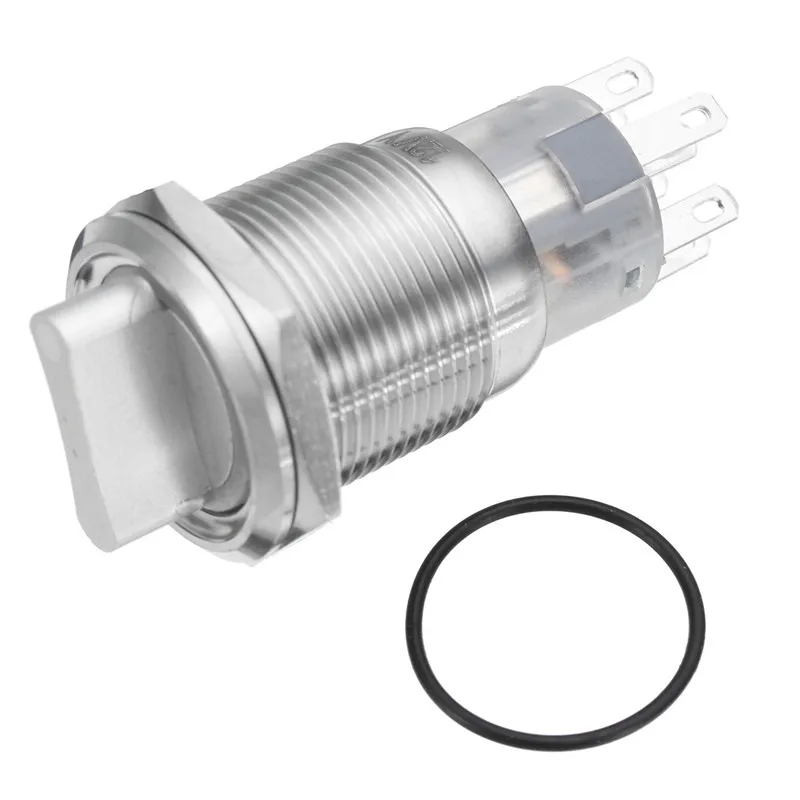 19mm 3 Position 12V Waterproof Stainless Steel Latching Metal Selector Knob Switch Metal Rotary Push LED Button