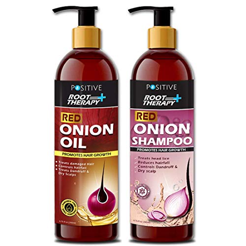 POSITIVE Root Therapy+ - Olio di cipolla rossa 200 ml per la crescita dei capelli e shampoo alla cipolla rossa 200 ml per la crescita dei capelli, kit di trattamento per la crescita dei capelli