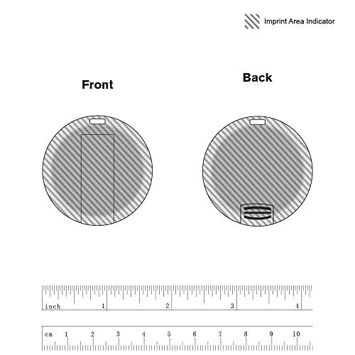 Area di stampa fronte / retro personalizzata in plastica USB: diametro 43 mm - Dimensioni unità: 43 mm x 43 mm x 2,55 mm.
