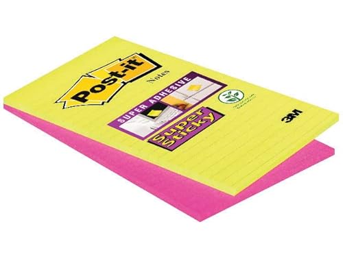 Post-it 51340 Super Sticky Foglietti a Righe, 45 Fogli, Confezione da 2 Blocchetti, 125 x 200 mm, Neon