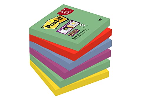 Post-it 654sm5 + 1 Foglietti Promotion, 76 X 76 mm, 6 blocchi a 90 fogli, Marrakesh Collection: Verde chiaro, rosso, giallo, pflaumenlila