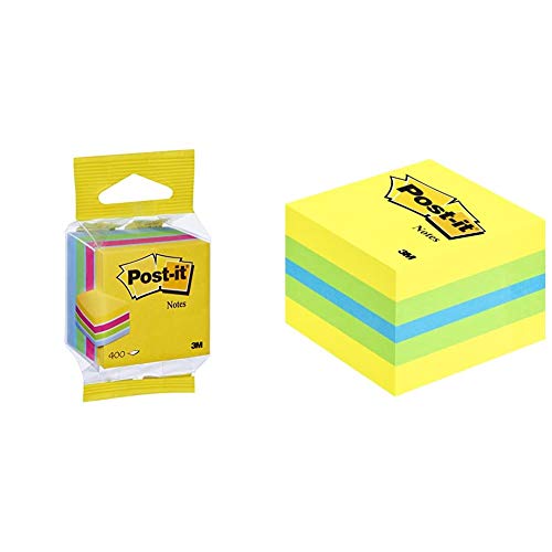 Post-It Ft510280868 Mini Foglietto Adesivo, Multicolore (Giallo/Rosa/Verde/Blu) & 34561 Mini Cubo Di Foglietti Adesivi Riposizionabili, 51 X 51 Mm, Multicolore (Verde/Giallo/Blu)