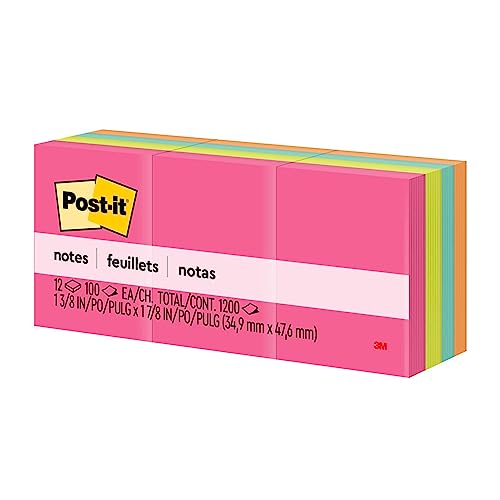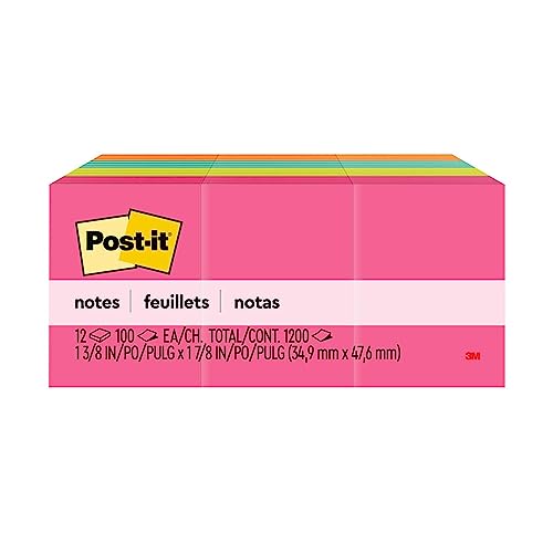 Post-It Notes, 1.5 x 2 in, Cape Town Collection, 12 Pads/Pack Blu, Arancione, Rosa, Giallo 100fogli Pouch autoadesiva