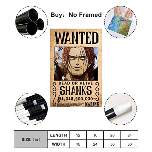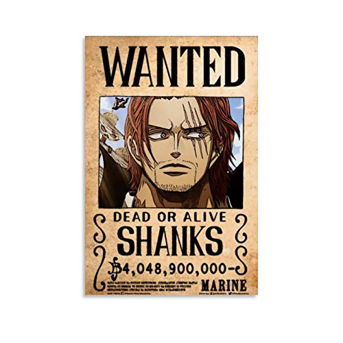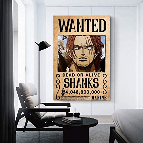 Poster Anime One Piece Wanted Shanks Canvas Art Poster e Wall Art Print Modern Family camera da letto Decor Poster 50 x 75 cm