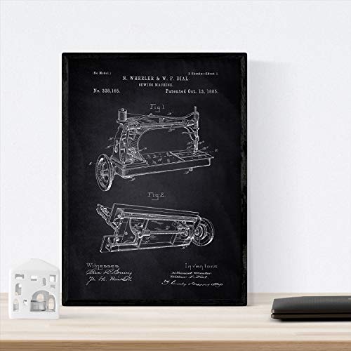 Poster Nacnic macchina per cucire di brevetto. Foglio con il vecchio formato A3 brevetto di disegno con sfondo nero