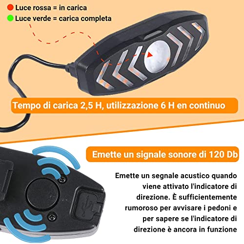 [ NON AVRAI PIÙ BISOGNO DI ALZARE IL BRACCIO PER INDICARE LA TUA DIREZIONE ] Con un pollice indichi la tua direzione e sei visibile fino a 100 metri di distanza grazie ai LED ultra luminosi. Inoltre, con il segnale acustico integrato (beep beep) segnala la tua presenza agli altri utenti della strada e ai pedoni. Gli altri utenti della strada possono anticipare i tuoi cambi di corsia e sentirti a distanza per la tua sicurezza;