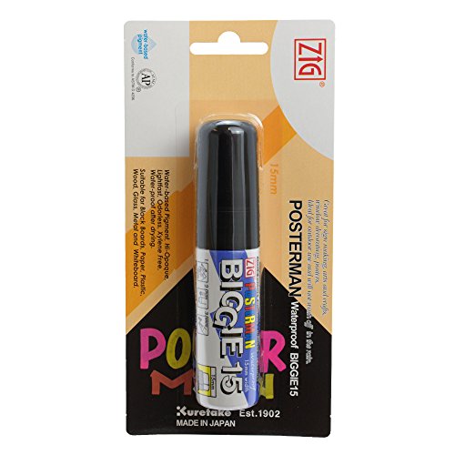 Zig Posterman, pennarello a gesso liquido per lavagna bianca, con punta larga da 15 mm, impermeabile, anche per uso all'esterno su vetro, legno, metallo, plastica, legno, colore: nero