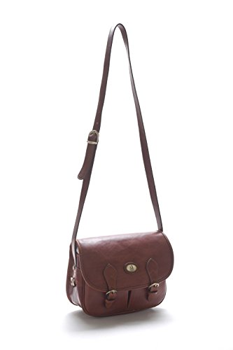ESTERNI: - pelle pieno fiore conciata la vegetale e tamponata a mano - costruzione semi rigida - chiusura con pattina e due bottoni magnetici - tracolla in pelle regolabile - tasca posteriore con chiusura a zip - accessori in metallo