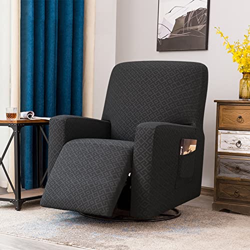 JHLD 1 posto Copripoltrona Elastico Relax, Spandex Jacquard Copripoltrona Relax reclinabile 4 pezzi con Tasche copripoltrona reclinabile Copripoltrona relax-grigio scuro-Poltrona Relax