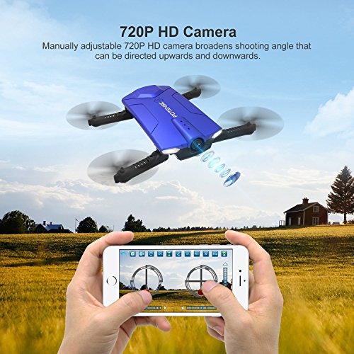 Potensic Drone Pieghevole e Portatile con Wifi Telecamera 720P, Drone Controllato Direttamente con APP del Cellulare senza Telecomando-Blu