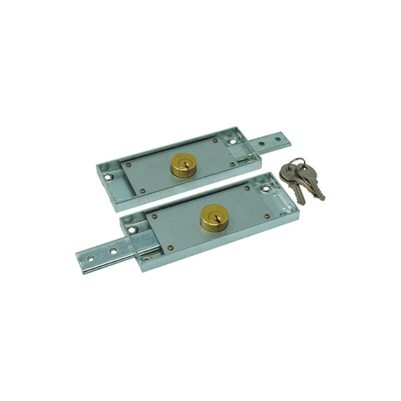 Serratura serranda applicare c1625 potent C.tondo fisso laterale dx+sx c.diritto cf=pz 2 cifratura ka a coppia. con cilindro tondo fisso da mm. 25 di diametro. per installazione laterale con catenaccio dritto a 1 mandata. corsa catenacci mm. 25. scatola in acciaio zincato da mm. 155x56, spessore mm. 15. in dotazione: 3 chiavi piatte.