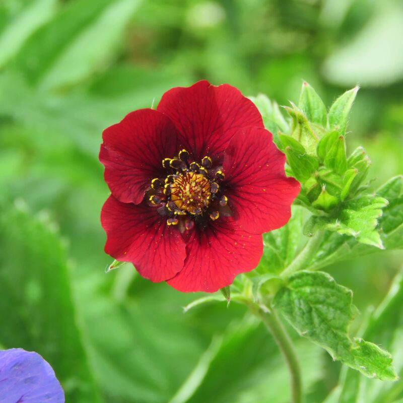 La pianta di Potentilla atrosanguinea è una perenne cespitosa, tomentosa, a foglie tripalmate verde scuro, lunghe 5-8 cm, con 3-5 foglioline da ovate ad ellittiche oppure obovate, dentate, coperte da peli argentei. Produce pannocchie di fiori a piattino, di colore rosso scarlatto, arancione, giallo, larghi 3 cm, che sbocciano su steli eretti, sottili e ramificati. Coltivata per la sua prolungata fioritura, è ideale per bordure o per siepi basse. Le piante erbacee perenni vivono tutto l'anno e sopportano le temperature più rigide. Possono incorrere in una fase di riposo vegetativo durante la stagione avversa, riprendono poi la fase di vegetazione quando le condizioni torneranno favorevoli. https://www.youtube.com/watch?v=ttPmOZiaTig