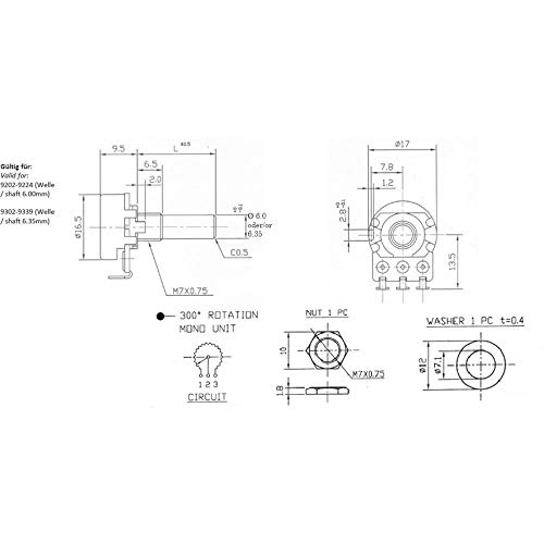 Potentiometer Service RV16AF-10-15R1-9316/A2,5K Potenziometro rotativo 1 Giro Mono 0.06 W 2.5 kΩ 1 pz.