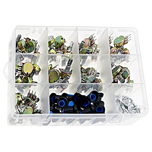 OHM - Potenziometro lineare, B1K B5K B10K B20K B50K B100K B250K B500K B1M Ohm con albero zigrinato lineare, potenziometro conico rotante con kit manopola in plastica, confezione da 45 pezzi